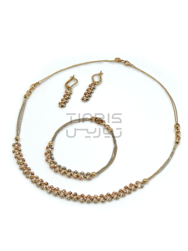 در نهایت، اگر بهدنبال سرویس طلای زنانه خاص هستید که هم ظریف باشد و هم طراحی آن متفاوت و الهامبخش، این مدل با گویهای طلایی درون حلقههای متصل، همان انتخابیست که برای درخشیدن نیاز دارید.