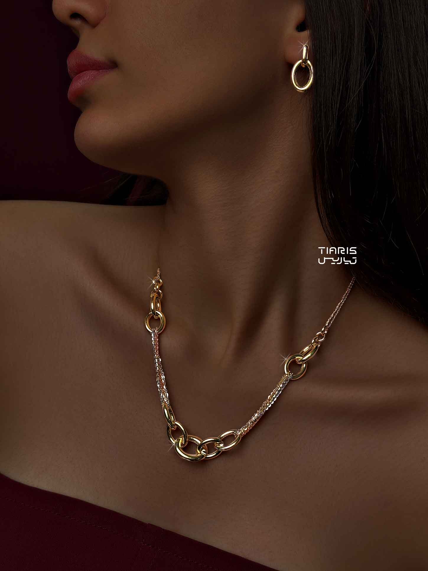 من در این سرویس، سادگی دایره را با درخشش متعادل ترکیب میکنم تا جلوه کار نه بیش از حد شلوغ شود و نه ساده دیده شود. طراحی خطی و تمیز باعث میشود سرویس روی گردن و گوش بهخوبی دیده شود و استایل شما را زیباتر کند. این مدل برای استفاده روزمره، محیط کار و مهمانیهای رسمی کاملاً مناسب است و با لباسهای مینیمال، کلاسیک و حتی مجلسی هماهنگ میشود.