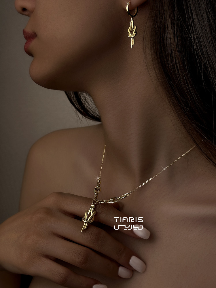 سرویس طلای زنانه خاص شامل گردنبند، دستبند و گوشوارههایی هماهنگ است که هرکدام بهطور هنرمندانهای با همین الگوی گوی در حلقه طراحی شدهاند. این سبک طراحی، نه تنها خاص و کمنظیر است، بلکه با استایلهای مختلف از کلاسیک تا مدرن بهراحتی ست میشود.
